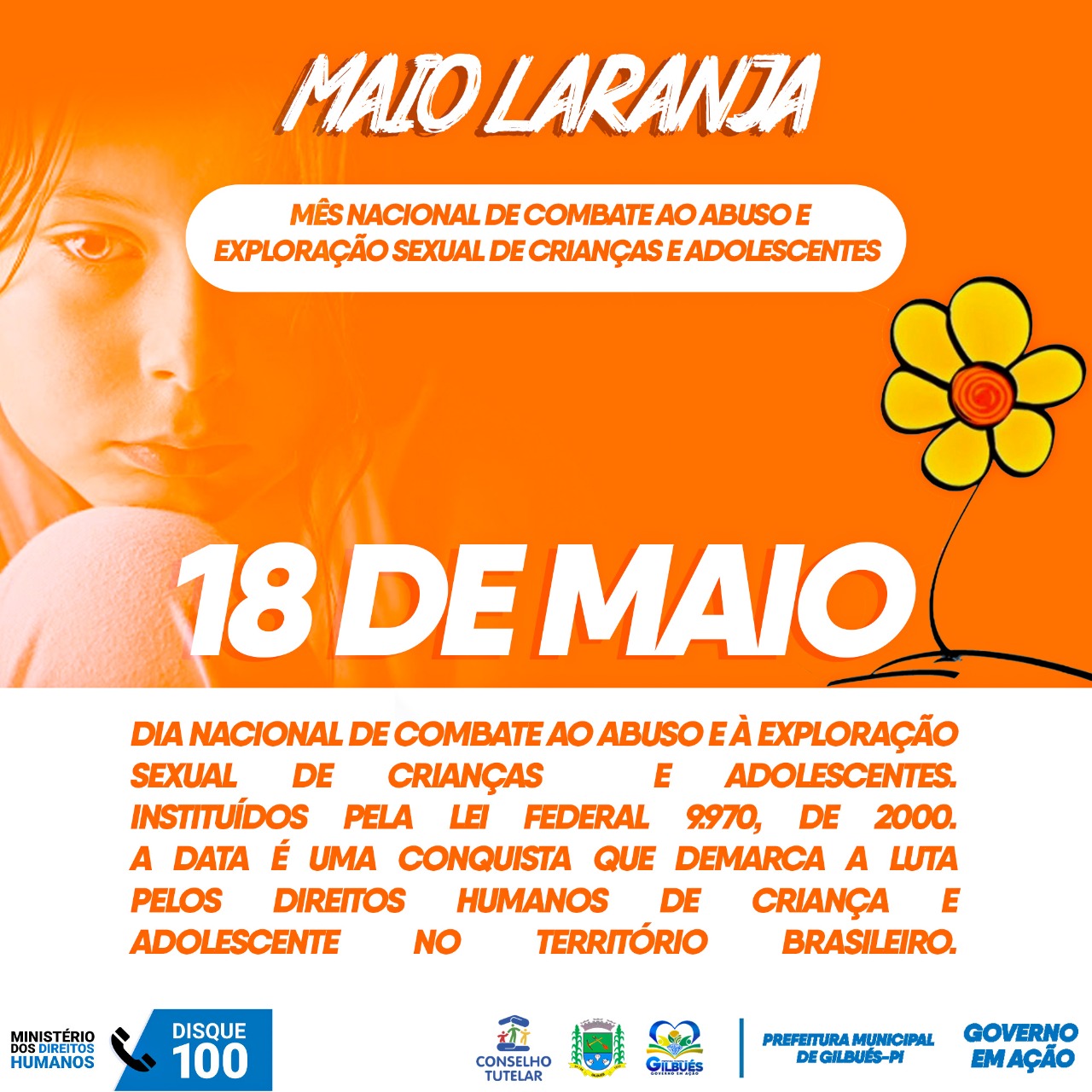 A Lei Federal nº 9.970 de 2020, instituiu o dia Nacional de combate ao abuso e à exploração sexual de crianças e adolescentes, “18 de Maio”. A data é uma conquista que demarca a luta pelos Direitos Humanos de crianças e adolescentes no território brasileiro.