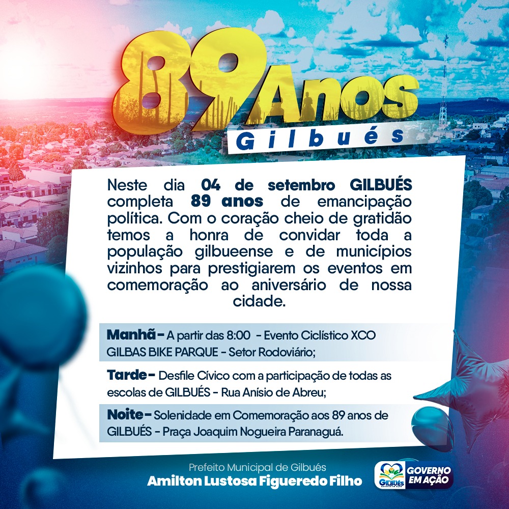 Data: 02/09/2022O município de Gilbués-PI completará neste domingo, 04 de setembro de 2022, 89 anos de emancipação política e história na região do extremo-sul piauiense.